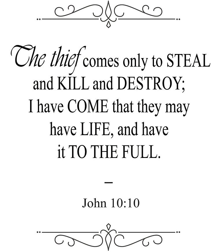The thief does not come except to steal, and to kill, and to destroy. I have come that they may have life, and that they may have it more abundantly. (John 10:10/NKJV)